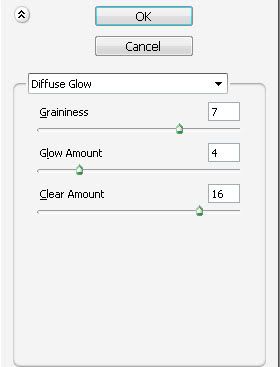 sekarang kita masuk ke Filter-Distort-Diffuse Glow dan atur seperti berikut.