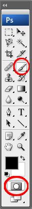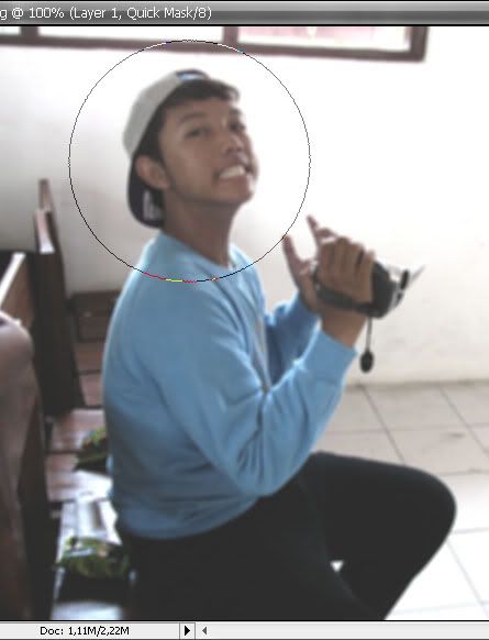 setalah itu tekan QuickMaskMode dengan menekan Q dan pakai tool Brush Tool dengan menekan B seperti berikut :