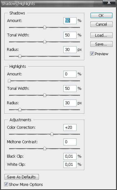 setelah itu pilih Image->Adjusments->Shadow/highlight (agar tidak terlalu terang) :